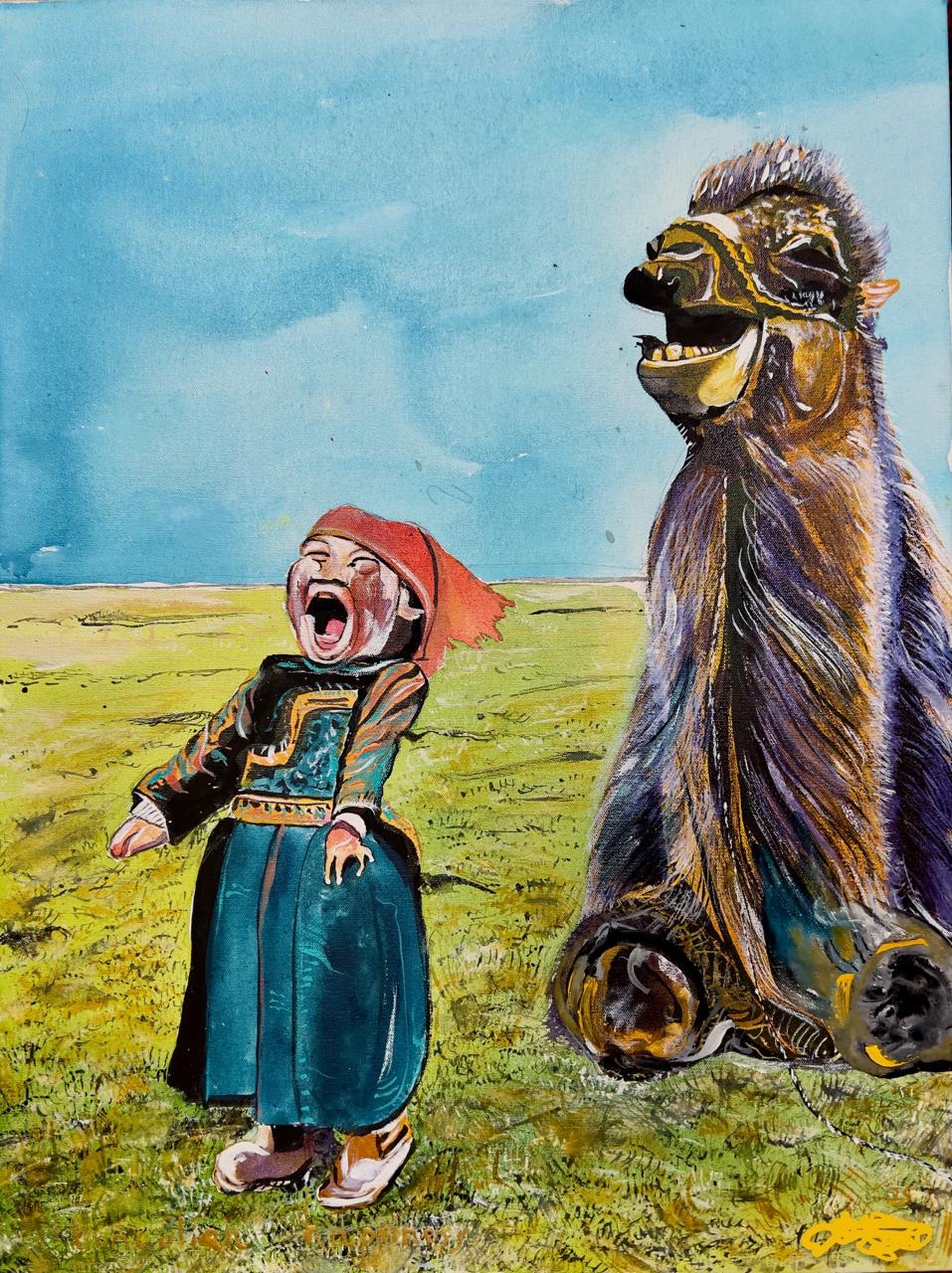 Acrylic, Inc, Gouache Paint on Canvas, Frame