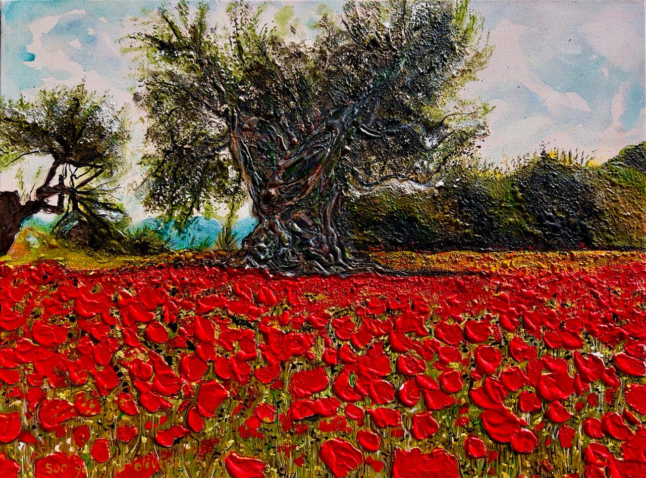Acrylic, Ink, Gouache Paint on Canvas, Frame